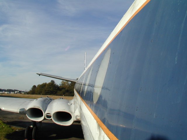 Pannier tank. Note slot just inboard of the tank and the fuel dump vents,
