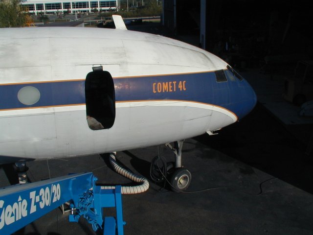 side of nose with crew entry door just after entering hanger.